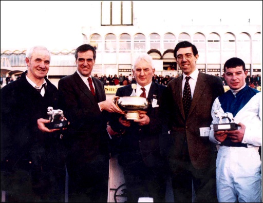 Cheltenham very rarely saw scenes like the one that greeted Danoli, Dan O’Neill, Tom Foley and Charlie Swan as the proud owner lead his horse……… well Myshall’s horse into the famous winners enclosure in the Cotswolds of Cheltenham and then it was onto Aintree where he enjoyed further success when as a novice he beat the first four home in the Champion Hurdle……. What a performance!