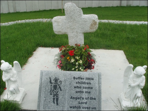 Outside the original cemetery lay a granite cross to mark the site of the burial ground of many unbaptised infants who died at birth or were still born. In 2003 a cemetery committee was formed to maintain the cemetery and one of its first tasks was to acquire additional land for burial ground and it was decided by the committee to approach the owner of land on which the children’s burial plot was located and to amalgamate it into the present cemetery. The land was acquired for the parish and the committee raised the funds to develop the site. It was decided to enclose the children’s plot and to erect a suitable monument on the site.