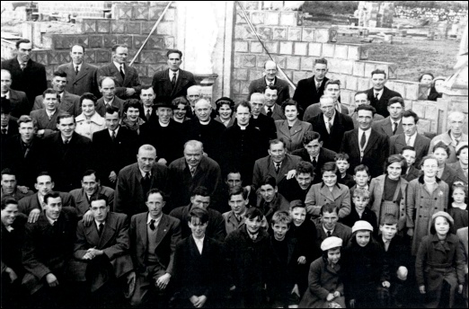 In 1954 construction started on a new school in Myshall. Pictures of the opening of the Marian Shrine Myshall actually show the site as a construction site in the background. It opened in 1955, built by Mr. Brian Kelly, originally from Co. Offaly, and it opened with three teachers – Mr. Andrew Jordan (Principal), Mrs. Mullen (Vice Principal) and Mrs. Matt Doyle, (Privileged Assistant).